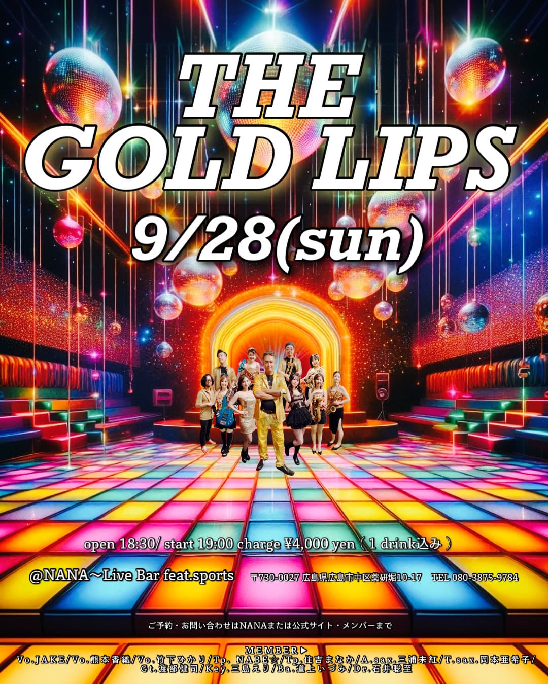 Vo.JAKE Vo.熊本香織 Tp.NABE⭐︎ Tp.住吉まなか TSax.岡本亜希子 ASax.三浦未紅